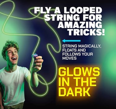 Glow-in-the-dark magic: ZipString Luma comes with 5 strings with different lengths and colors. 3 Neon Strings and 2 Ultra glow strings. Luma’s built-in LED charges the ultra glow string for endless glow. Create shapes and tricks in the light and at night!